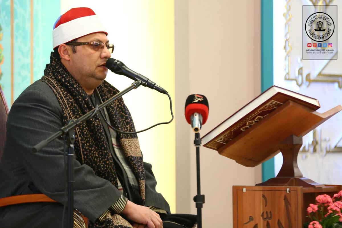 استُهِلّ الحفلُ بتلاوة آياتٍ من الذكر الحكيم بصوت القارئ المصري فضيلة الشيخ أحمد عبد الحي من جامعة الأزهر، وقراءة سورة الفاتحة على أرواح شهداء العراق، لتأتي بعدها كلمةُ أمين مسجد الكوفة والمزارات الملحقة به السيد محمد مجيد الموسوي والتي رحب فيها بالحاضرين مذكراً بما امر به الله سبحانه وتعالى في كتابه العزيز بحفظه وتلاوته، ثم ارتقى المنصة مجموعة من براعم الثقلين الإسلامية يقرأون آيات من القرآن الكريم.