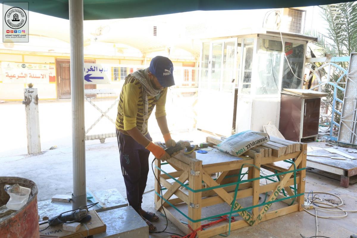 بالصور .. المراحل الاخيرة لمشروع بناء غرف التفتيش في باب الرحمة لمسجد الكوفة المعظم