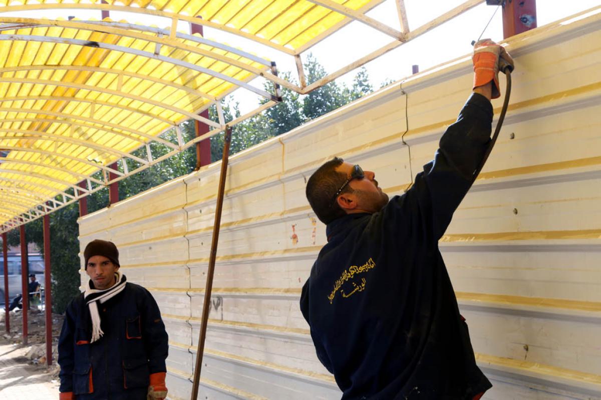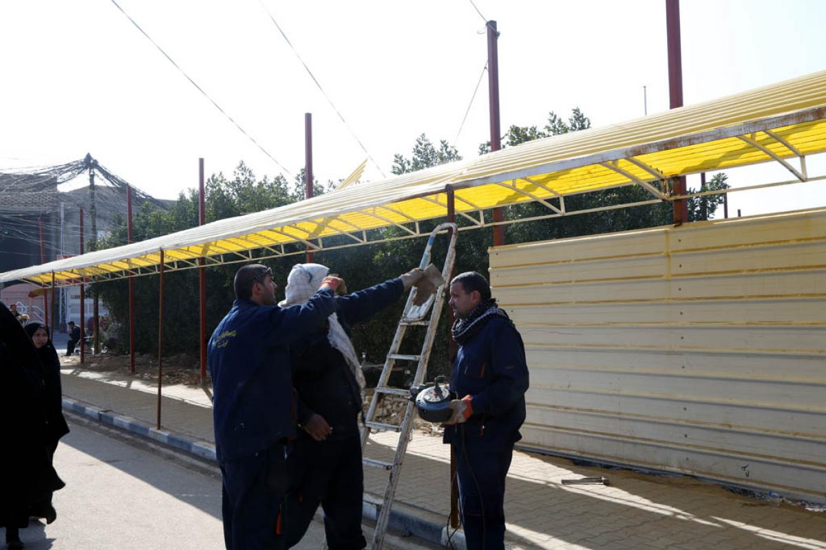 نصب مظلات ثابتة في طريق زائري مسجد الكوفة