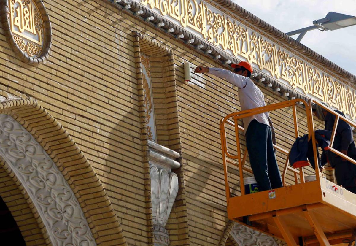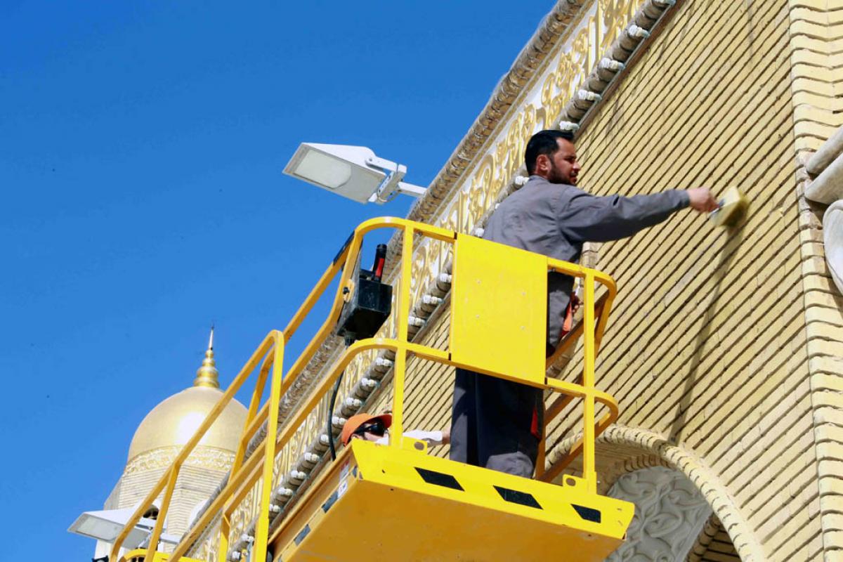 من اجل أن يكون المسجد والمزارات الملحقة بهِ بأبهى صورة تنسجم والدور الحضاري والفكري ومكانة المسجد ومنزلته وقدسيته وتواصلاً لحملة الاعمار التي تقوم بها أمانة مسجد الكوفة المعظم والمزارات الملحقة به ، باشر قسم الشؤون الهندسية في الأمانة بحملة جلي وطلاء جدران المسجد ،