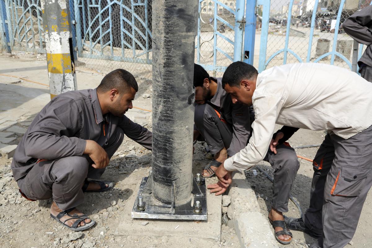 استكمالا لمشروع إنارة الشارع المحيط بمسجد الكوفة المعظم من الجهة الغربية تقوم الكوادر الهندسية التابعة للأمانة بنصب أعمدة إنارة خدمة لزوار المسجد المعظم والمراقد الطاهرة جواره.